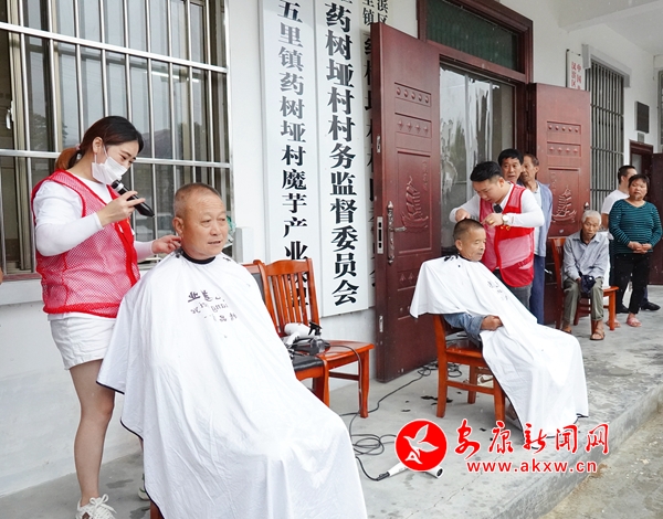 7月19日一大早,五里鎮(zhèn)藥樹(shù)埡村熱鬧非凡。很多村民陸續(xù)趕到村委會(huì),排隊(duì)理發(fā)。“我平常理發(fā)要去鎮(zhèn)上,來(lái)回一趟得兩三個(gè)小時(shí),還要花二三十的車(chē)費(fèi)。這次有人來(lái)免費(fèi)給我們理發(fā),真開(kāi)心。”剛理完發(fā)的曹德秀阿姨高興地說(shuō)。