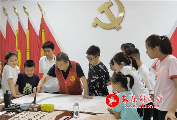 在羅軍書(shū)記不辭辛苦耐心指導(dǎo)下,不僅讓孩子們對(duì)書(shū)法有了初步了解,而且從中體驗(yàn)到了書(shū)法的妙趣,陶冶了情操,現(xiàn)場(chǎng)氣氛其樂(lè)融融。