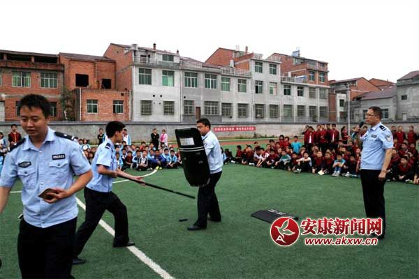 在活動過程中,該所副所長陳小兵先進行了法律知識講座。講座中,陳所長針對青少年犯罪的性質(zhì)、特點、根源,結(jié)合青少年的生理、心理特征,以生動的事例,詳實的資料,通俗的語言,解讀了一個個觸目驚心的青少年犯罪案例,給學生上了一堂生動的法制教育課。緊接著公安民警又向師生們展示了催淚噴射器、警棍、鋼叉、阻車器等警用裝備并模擬在遇到壞人時應如何正確使用這些警用裝備以便最迅速、有效地將壞人制服,師生們聽得聚精會神,博得了師生的陣陣掌聲。