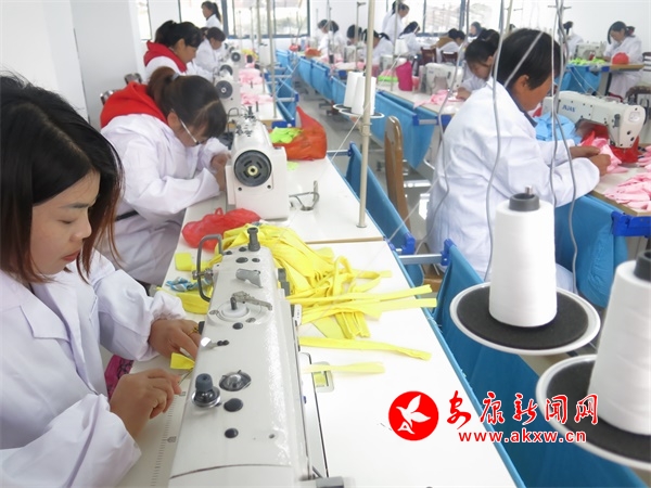 工廠車間里,來自附近村民60余名工人們在師傅的指導(dǎo)下忙碌的做著毛絨玩具,只聽見一片縫紉機(jī)歡快的呲呲聲響起。