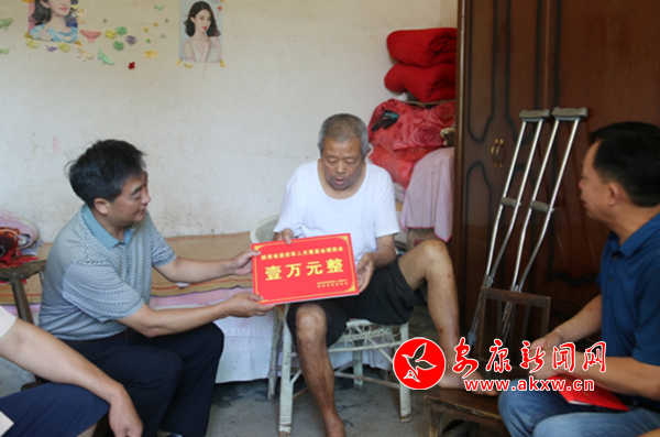 本網(wǎng)訊 (通訊員 方祎峰) 8月15日,漢陰縣委常委、縣政府副縣長(zhǎng)李宗山帶領(lǐng)縣退役軍人事務(wù)局、縣慈善協(xié)會(huì)等單位上門為王懷榮、彭書(shū)強(qiáng)、陳友根三位困難退役軍人送去了省級(jí)第二批“關(guān)愛(ài)基金”援助金各1萬(wàn)元。