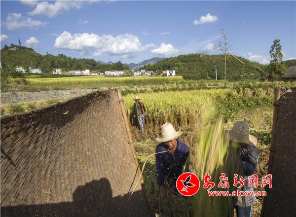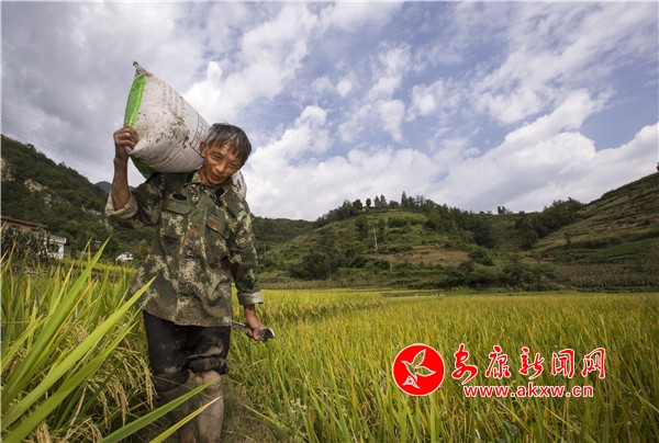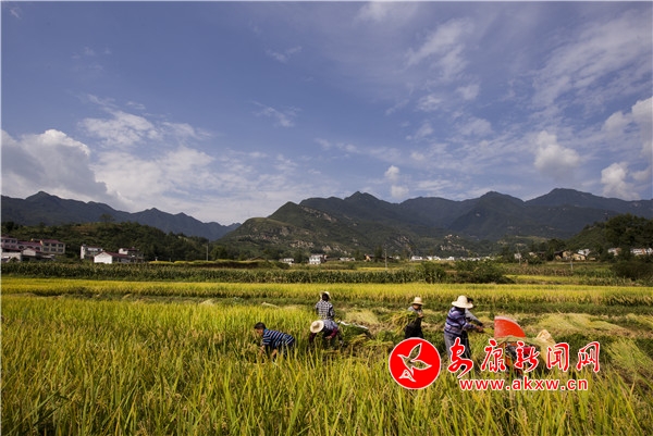 鳳堰古梯田位于漢陰縣漩渦鎮(zhèn),共有一萬兩千余畝,其中水稻種植面積三千余畝。今年九月以來,由于陰雨連綿,水稻收割受到影響,9月21日,天氣放晴,高高的藍(lán)天下,田野里的稻子笑彎了腰,農(nóng)民齊刷刷在稻田里勞作,用自己勤勞的雙手詮釋又一個(gè)豐收年。(謝小利 攝)P8i安康新聞網(wǎng)