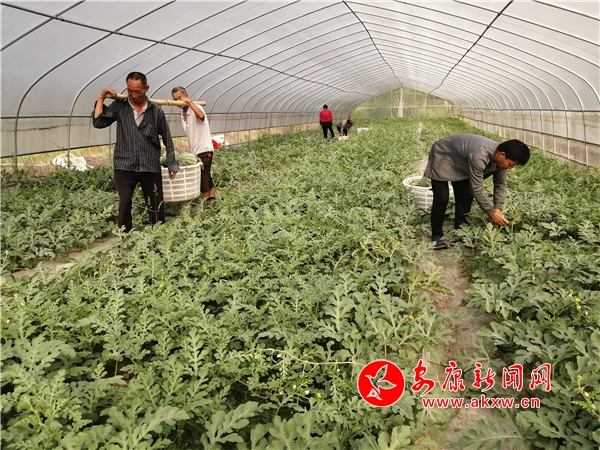 今年初春,西瓜育苗、栽植時(shí)節(jié)正值新冠肺炎疫情高峰期,但春耕生產(chǎn)并未延誤。村干部每天到園區(qū)為務(wù)工的村民發(fā)口罩、量體溫、消毒,在做好疫情防控的同時(shí)也搶抓了農(nóng)時(shí)。種瓜是勞動(dòng)密集型產(chǎn)業(yè),除草、施肥、打頭、采摘、裝箱、裝車......,在龍埡蔬果產(chǎn)業(yè)體驗(yàn)園里,每天都有10多名當(dāng)?shù)卮迕翊蚬,每人每天?00余元的收入。