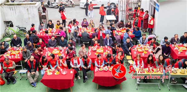 老人們圍坐在擺滿瓜果月餅糕點的方桌旁,身著紅色志愿服的志愿者們穿插其中,引導參會的老人們?nèi)胱,為他們端茶倒水。參會單位代表縣審計局為現(xiàn)場老人送上了祝福,社區(qū)文藝志愿隊帶來了優(yōu)美動人的舞蹈《望月》,文藝愛好者文芳一曲《人間第一情》唱得滿場感動。接下來的活力四射舞蹈《別知己》更是使現(xiàn)場氣氛達到了高潮,老人們一邊品嘗著各種食品,一邊認真地看著文藝節(jié)目,臉上滿是幸福的笑容。社區(qū)80歲高齡的退休老黨員張新印高興地說:“今天參加活動特別高興,感謝轄區(qū)單位和社區(qū)給我們準備的月餅、水果,提前給我們過節(jié)日,我們真是吃到嘴里,甜到心里,謝謝大家,也祝愿所有人節(jié)日快樂!”