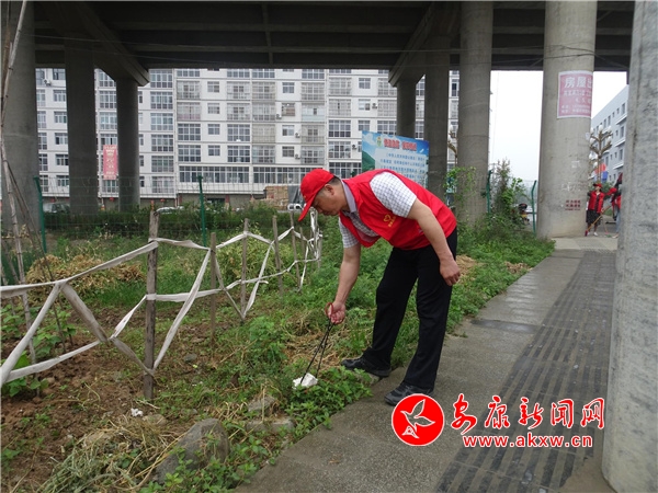 在清掃間隙,志愿者們還與周?chē)用窈炗啞堕T(mén)前“四自一包”責(zé)任書(shū)》,倡議大家自管環(huán)境衛(wèi)生、自護(hù)花木綠化、自覺(jué)維護(hù)秩序、自護(hù)公共設(shè)施和包抓衛(wèi)生責(zé)任,激發(fā)群眾的大局意識(shí)和責(zé)任意識(shí),號(hào)召大家共建干凈整齊的家園,并對(duì)部分居民隨地丟垃圾與沒(méi)做好門(mén)前衛(wèi)生的店主進(jìn)行文明行為勸導(dǎo)。
