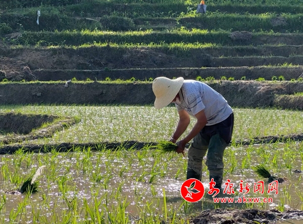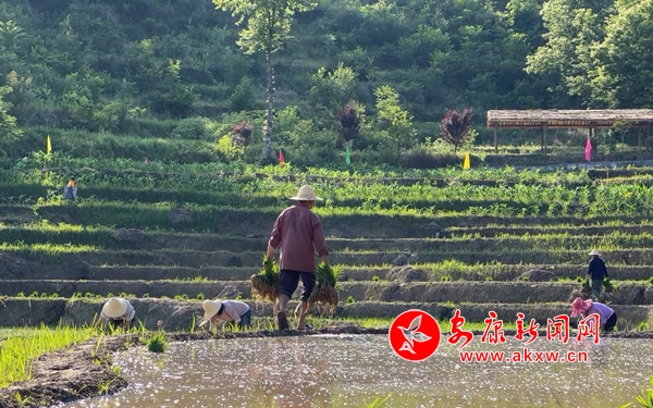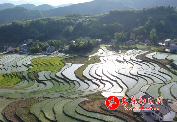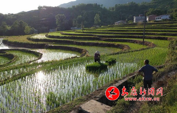 放眼望去,層層梯田披上了一襲綠色的新裝,微風(fēng)吹過(guò),秧苗輕輕搖擺,蕩漾起無(wú)限生機(jī)。在持續(xù)兩周的插秧期,村民們每天從早上六點(diǎn)一直忙到下午七點(diǎn)鐘才收工,“手把青秧插滿(mǎn)田”的農(nóng)忙景象與大大小小形狀各異的水田,構(gòu)成一幅詩(shī)意盎然的田園風(fēng)光圖。
