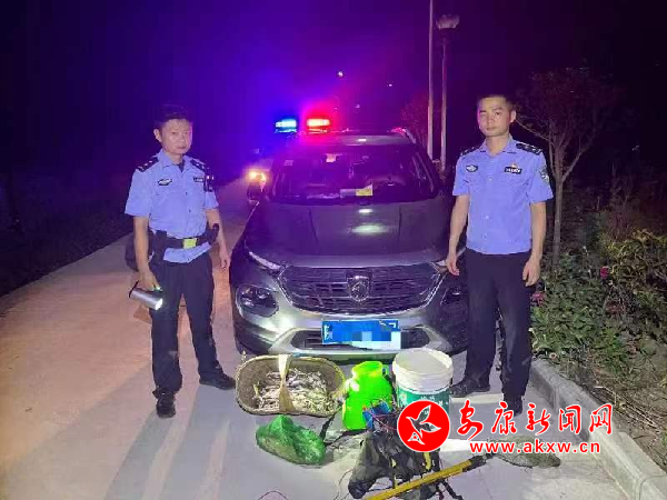 7月31日,漢陰公安雙乳派出所接到護河信息員反映夜間有人在轄區(qū)三同村段月河內(nèi)電魚的線索后,該所組織警力進(jìn)行核查布控,23時許,民警發(fā)現(xiàn)有兩名嫌疑男子正在河道內(nèi)使用電瓶裝置以電魚方式進(jìn)行非法捕撈。兩名嫌疑人發(fā)現(xiàn)民警后,立即丟棄電瓶裝置、漁獲物等作案工具逃離,經(jīng)過民警細(xì)致排查,現(xiàn)場查扣嫌疑車輛一臺,鎖定了犯罪嫌疑人。