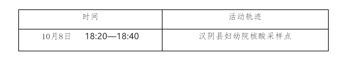 根據(jù)流調(diào)情況,現(xiàn)將外市核酸檢測陽性病例涉及密切接觸者在漢陰縣的公共場所活動軌跡公布如下: