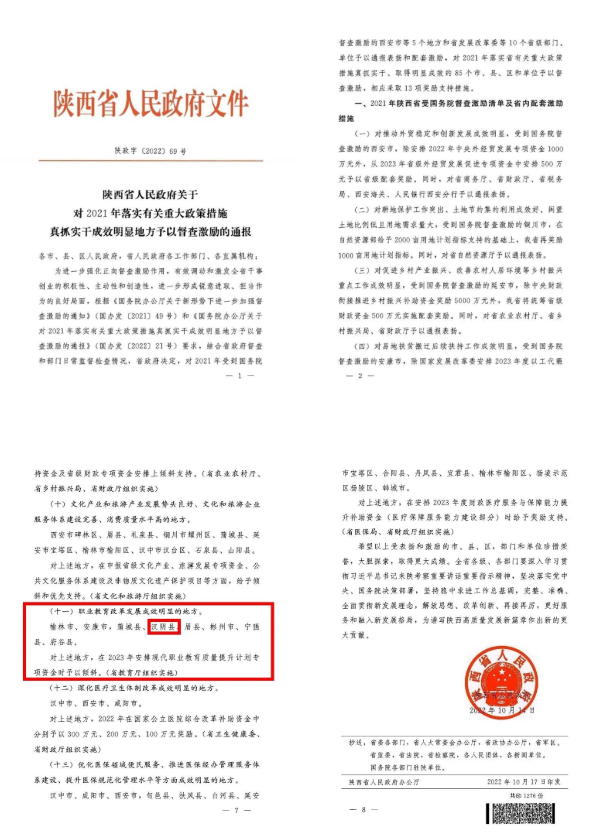 從陜西省人民政府文件《陜西省人民政府關于對2021年落實有關重大政策措施真抓實干成效明顯地方予以督查激勵的通報》(陜政字[2022]69號)獲悉,漢陰縣獲評2021年度職業(yè)教育改革發(fā)展成效明顯縣。此次全省共六個縣區(qū)榮獲職業(yè)教育改革發(fā)展成效明顯縣,漢陰縣名列其中。陜西省教育廳將在2023年安排現代職業(yè)教育質量提升計劃專項資金時對漢陰縣予以傾斜。692安康新聞網