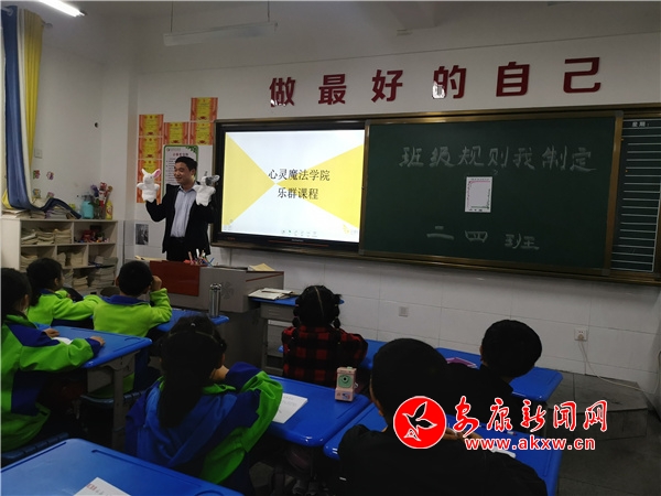 本網(wǎng)訊(通訊員 徐雯雯 鐘自坤)5月10日,漢陰縣鳳臺(tái)小學(xué)班主任郭老師拿著兩只小兔子玩偶,在講臺(tái)上聲情并茂地演繹心理故事,臺(tái)下的孩子們臉上掛著開心的笑容。這是鳳臺(tái)小學(xué)一節(jié)主題為《我的好朋友》的心理健康課程。