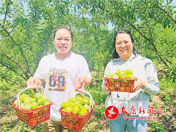 “今天過來摘幾個嘗一下,確實非常好吃,我摘了四五筐帶回去,讓老人家也嘗下鮮,看到他們今年還有精品禮盒裝的,我又給在外工作的親人也寄了幾盒走。”游客趙女士說。