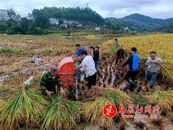 9月30日,天氣剛剛放晴,漢陰縣鳳堰古梯田村民搶收稻田水稻,奪取秋糧豐收。(通訊員 林愛銘 林欽欽 吳淼淼)