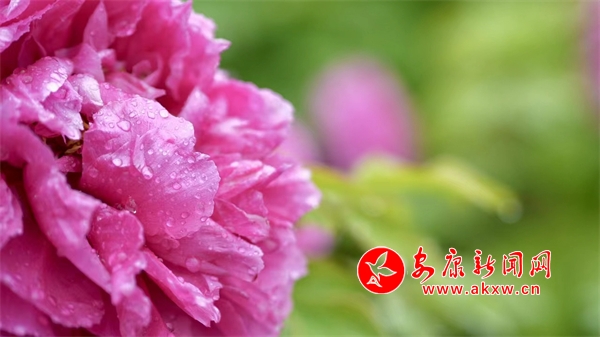 走進牡丹園中,一朵朵牡丹花開正艷、絢麗多彩,陣陣花香沁人心脾、令人陶醉。從空中俯瞰,五顏六色的牡丹花次第開放,妖嬈的花朵掩映在綠色的枝葉中,一團團、一簇簇,開得甚是熱鬧,可謂“百花”齊放、香氣四溢。走近細看,白牡丹綻開著白色的花瓣,雪白的多層花瓣中心吐露出金蕊,素雅且端莊;紫牡丹花瓣重疊,雍容華貴,絢麗奪目;粉牡丹恰似少女的臉龐,嬌艷欲滴,煞是可愛。