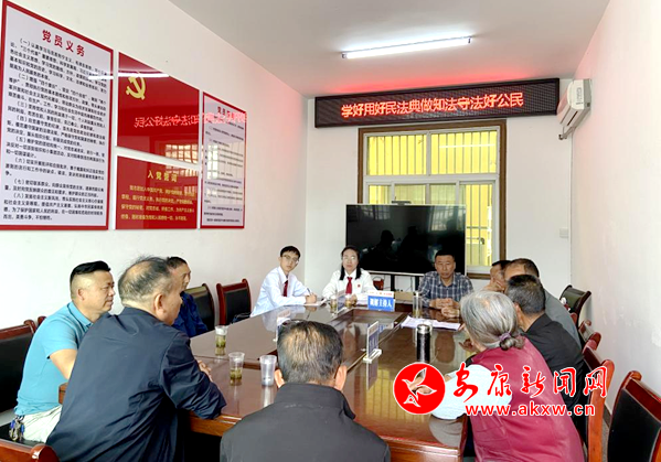 本網(wǎng)訊(通訊員 茹俊 李威 王文藝)近期,漢陰縣司法局雙乳司法所為切實(shí)加強(qiáng)民法典的宣傳普及工作,弘揚(yáng)社會(huì)主義法治精神,全面增強(qiáng)群眾的法治意識(shí),結(jié)合“民法典宣傳月”契機(jī),以“美好生活·民法典相伴”為主題,在雙乳鎮(zhèn)各村組織開(kāi)展“民法典進(jìn)鄉(xiāng)村”的宣傳宣講活動(dòng)。
