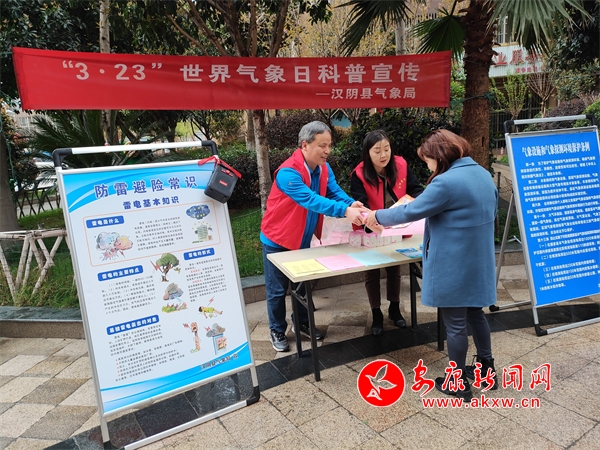 3月23日是第63個(gè)世界氣象日,漢陰縣氣象局下鎮(zhèn)村、進(jìn)社區(qū),向社會(huì)公眾發(fā)放氣象科普資料,開展氣象法律知識(shí)講解,傳播氣象防災(zāi)減災(zāi)知識(shí),大力提升人民群眾氣象防災(zāi)……