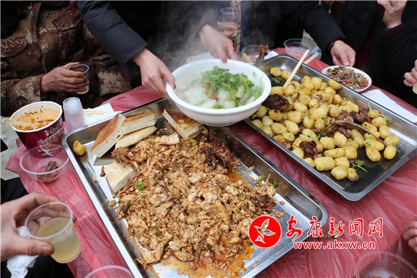 一場文化盛宴后,團(tuán)圓飯成了濃濃年味里最溫暖的守候。在烹飪師傅的精心烘烤下,帶有地方特色的烤全羊美食新鮮出爐,金黃酥脆的羊肉散發(fā)出誘人的香味。三陽開泰全羊宴,把酒言歡敘豐年,村民們圍聚在一起大快朵頤,暢飲美酒,拉家常話團(tuán)圓,在熙熙攘攘的人群中,在陣陣歡聲笑語里,年味在心頭漫開。