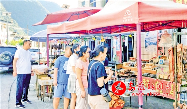 如今的廣貨街,成了南來北往都市人、休閑人群的“旅游街”,山貨土特產(chǎn),臘肉,豆腐干等地方特色農(nóng)產(chǎn)品擺滿街道兩旁,供過往游客選擇購買。每到節(jié)假日,廣貨街集鎮(zhèn)與各大景區(qū)游人絡(luò)繹不絕,從四面八方來而來的游客在廣貨街鎮(zhèn)度假游玩,享受著青山綠水帶來的歡樂。