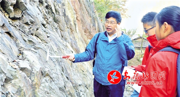 秦嶺峽谷樂園負責人林晉炎正在給研學的學生講解秦嶺的地質(zhì)構(gòu)造