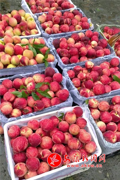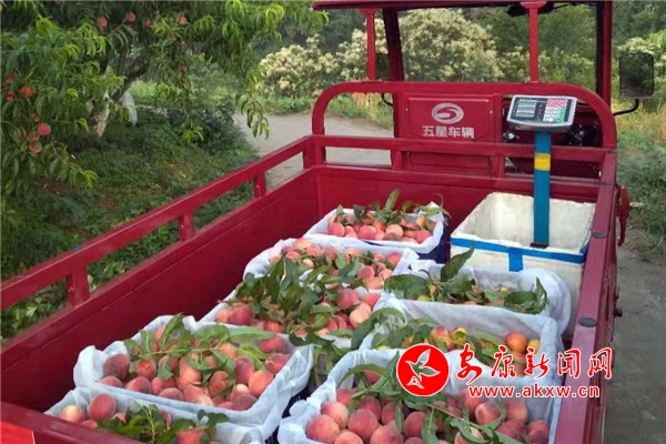 產(chǎn)業(yè)大戶許國(guó)棟的果園里栽種有蜜桃、黃桃、油桃、蟠桃、冬桃等七八個(gè)品種桃樹(shù)。蜜桃和黃桃現(xiàn)已大量上市。果園里工人們正加緊采收桃子,分揀裝框,一部分運(yùn)往附近超市,一部分通過(guò)網(wǎng)絡(luò)訂單發(fā)往全國(guó)各地。高峰時(shí)期,許國(guó)棟果園一天售出的桃子達(dá)4000余斤。