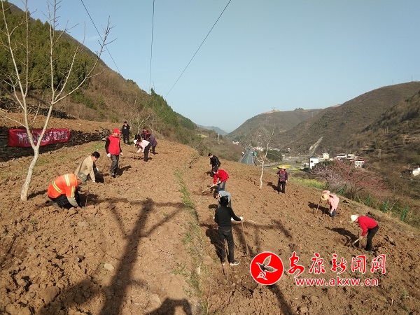 “我們這年齡也大了,出去務(wù)工也難,靠種地收入低,這次剛好社區(qū)連片栽植桃樹,這是個(gè)好機(jī)會,我地出租給社區(qū)集體,我在合作社務(wù)工每天80元工資,見效益后我們還可以分紅。”金河口社區(qū)貧困戶老江手握樹苗別提有多高興了。