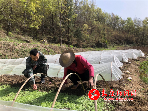 (指導(dǎo)貧困戶秦德文制作煙苗子床)