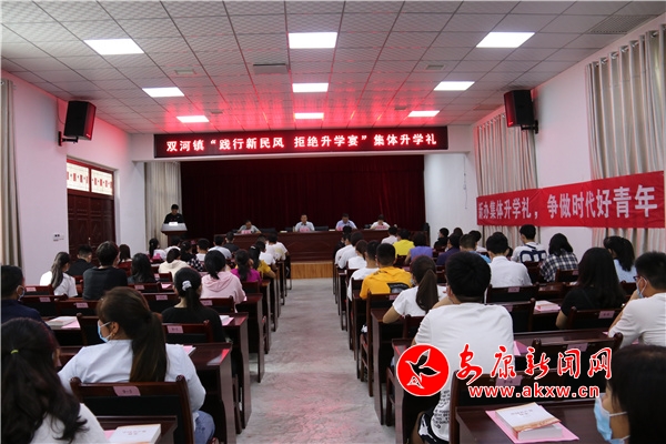 8月27日,在學(xué)子們即將走入大學(xué)校園,進(jìn)入人生新階段前夕,雙河鎮(zhèn)黨委、政府特意精心籌劃了以“踐行新民風(fēng),集體升學(xué)禮”為主題的集體升學(xué)禮儀式,為83名金榜題名的優(yōu)秀學(xué)子及辛勤付出的家長表示恭賀。