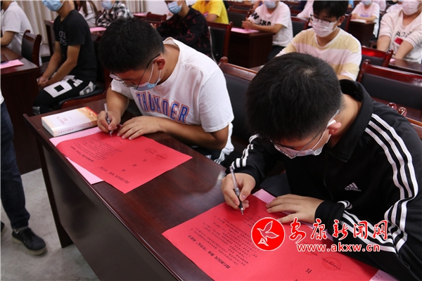 升學(xué)禮上,宣讀了“踐行新民風(fēng),集體升學(xué)禮”倡議書,呼吁各位家長和學(xué)生積極響應(yīng),以身作則,以實(shí)際行動踐行新民風(fēng)。并精心準(zhǔn)備了行李箱、書籍等生活用品。