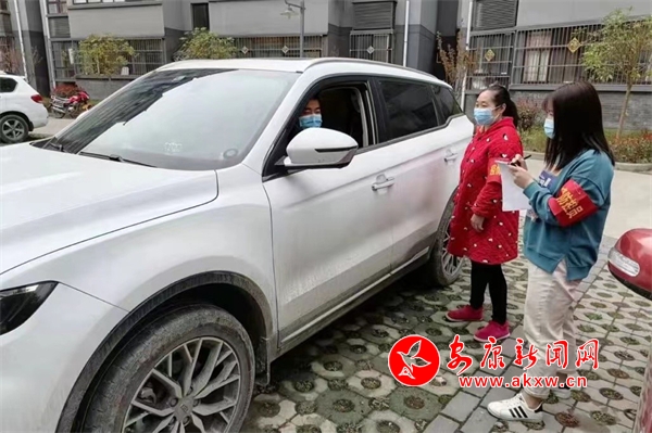 網(wǎng)格員在社區(qū)宣傳疫情防控相關(guān)知識