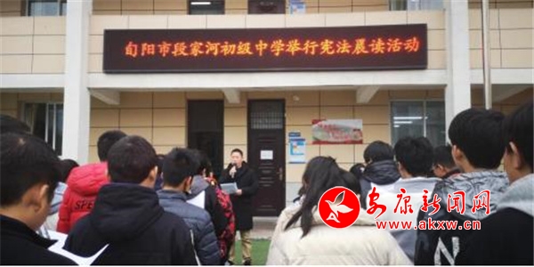學(xué)校里,開(kāi)展憲法晨讀,全體師生共同參與,同步跟讀憲法條款,讓學(xué)生通過(guò)學(xué)習(xí)憲法的基本原則和基本知識(shí),感受憲法精神,體悟憲法威嚴(yán),在校內(nèi)形成“積極宣傳憲法、尊崇憲法、維護(hù)憲法,弘揚(yáng)憲法精神,樹(shù)立憲法權(quán)威,增強(qiáng)法治觀念”的新風(fēng)尚。