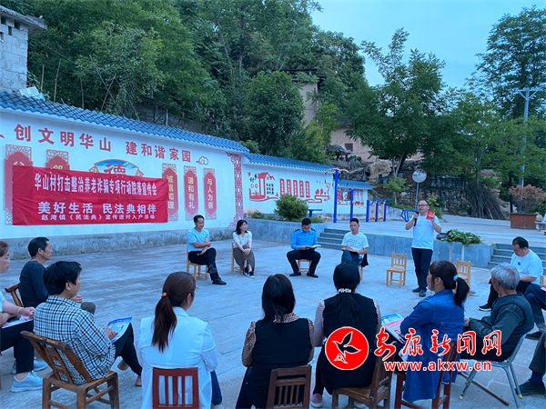 趙灣鎮(zhèn)華山村召開院落群眾會,宣講民法典。