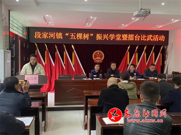 重學習,比能力。段家河鎮(zhèn)依托“五棵樹”振興學堂、“院落會”等形式,抓好集中學習、宣講、培訓等活動。重點圍繞鄉(xiāng)村振興、環(huán)境整治、產業(yè)發(fā)展、民生改善、基礎設施建設等內容,通過采取針對性授課、干部上講臺、青年干部座談會等形式,每兩周舉辦一次“擂臺比武”活動,切實用黨的二十大精神武裝頭腦、指導實踐、推動工作。