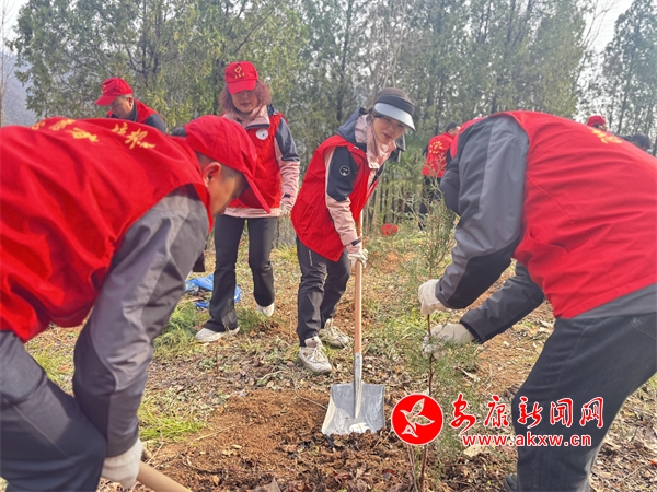迎著和煦的春風(fēng),參加植樹的黨員志愿者,精神抖擻、干勁十足,兩人一組,或三五成隊(duì),扶正樹苗、揮鍬培土、踏土夯苗、圍堰澆水,每個(gè)環(huán)節(jié)、每道工序都做得認(rèn)真細(xì)致,種下樹苗近100株。新栽種的樹苗錯(cuò)落有致、迎風(fēng)挺立,增添了盎然生機(jī),吐露著無限春意。