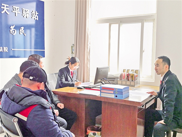 近年來,旬陽(yáng)法院立足山區(qū)基層法院實(shí)際,在抓好人民法庭工作的基礎(chǔ)上,在法庭下轄鎮(zhèn)的村、社區(qū)設(shè)立“天平驛站”,安排法官定期輪值,及時(shí)響應(yīng)群眾訴求,實(shí)現(xiàn)矛盾糾紛一站式接收、一攬子調(diào)處、全鏈條閉環(huán)解決, 推動(dòng)審判觸角向百姓“家門口”延伸。