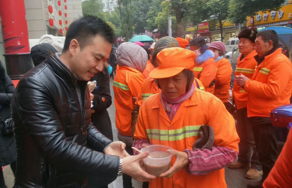 愛心企業(yè)為環(huán)衛(wèi)工免費送粥