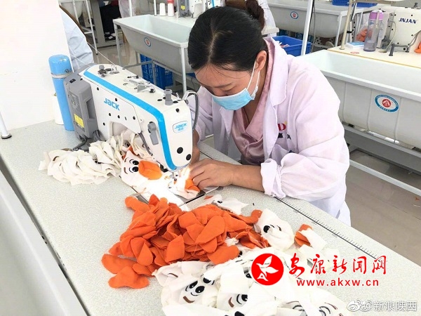 紫陽(yáng)縣毛壩鎮(zhèn)利用建設(shè)安置點(diǎn)形成的空閑場(chǎng)地,于2018年9月從江蘇省揚(yáng)州市引進(jìn)迪鑫玩具工廠,從事毛絨玩具生產(chǎn)加工。工廠里的員工大多都是毛壩鎮(zhèn)移民安置點(diǎn)的群眾,他們?cè)诩议T(mén)口實(shí)現(xiàn)了就業(yè)夢(mèng),而對(duì)于一些貧困戶(hù)而言,更是實(shí)現(xiàn)了足不出戶(hù)的就業(yè)夢(mèng)。據(jù)了解,毛壩鎮(zhèn)染溝村六組貧困戶(hù)杜孝彩,丈夫在廣州電子廠務(wù)工,三個(gè)女兒還在上學(xué),其中,大女兒剛參加完高考并以595分被陜西師范大學(xué)錄取,杜孝彩的三個(gè)女兒,利用暑假在家和母親一起承接毛絨玩具手工活,補(bǔ)貼家庭日常開(kāi)支。