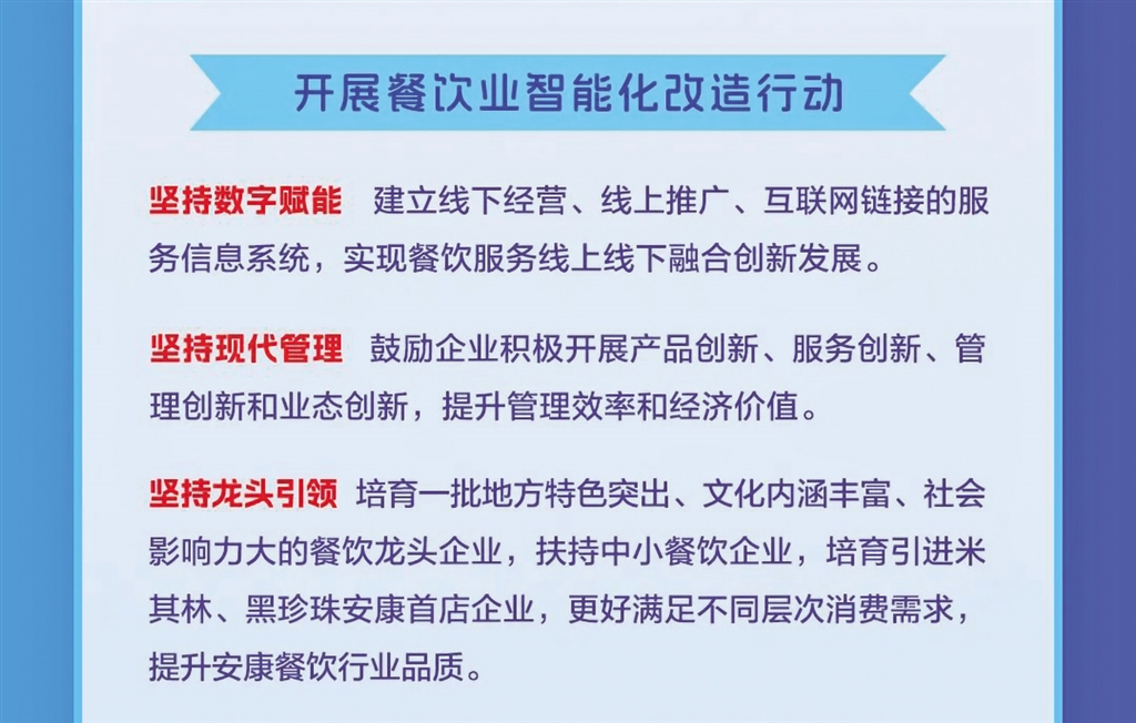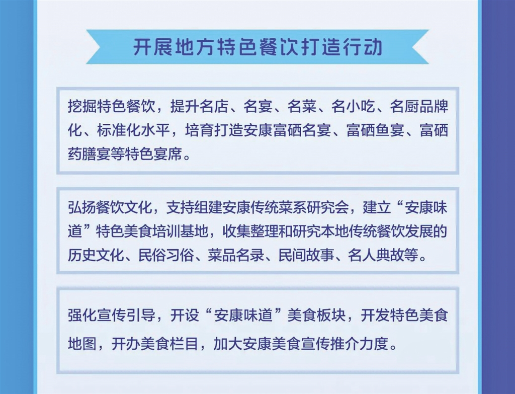 日前,安康市商務(wù)局等11部門聯(lián)合發(fā)布《關(guān)于進一步推進全市餐飲業(yè)高質(zhì)量發(fā)展的實施意見》,本期帶您一圖讀懂其重點任務(wù)。QNg安康新聞網(wǎng)