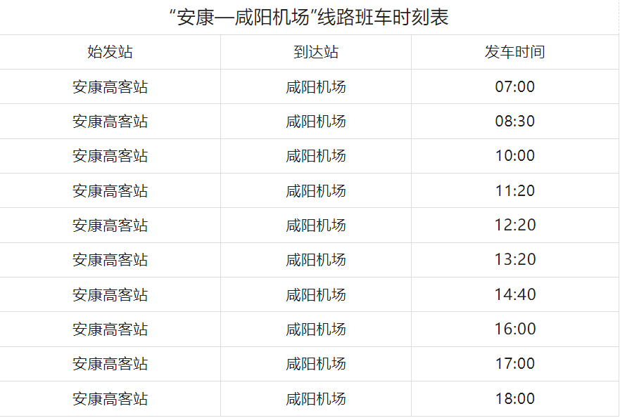 本網(wǎng)訊 2月1日,安康高速客運(yùn)站發(fā)布通告,“安康—咸陽機(jī)場”線路自2024年1月31日起更改發(fā)車時間,發(fā)車時間更改如下: bVp安康新聞網(wǎng)