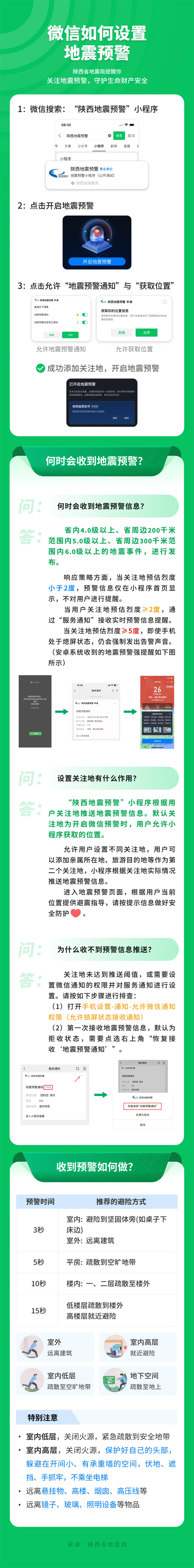 8月6日,記者從陜西省地震局獲悉:隨著國家地震預(yù)警工程的全面建成以及陜西《地震預(yù)警信息發(fā)布規(guī)范》地方標(biāo)準(zhǔn)的實(shí)施,“陜西地震預(yù)警”微信小程序已正式上線,可為用戶提供本地地震預(yù)警服務(wù)。省界范圍內(nèi),滿足陜西《地震預(yù)警信息發(fā)布規(guī)范》的地震事件發(fā)生后,該小程序?qū)⒃?0秒內(nèi)向用戶發(fā)布地震預(yù)警信息,最大并發(fā)量可達(dá)每秒200萬用戶,將有效降低地震災(zāi)害造成的人民群眾生命財產(chǎn)損失。