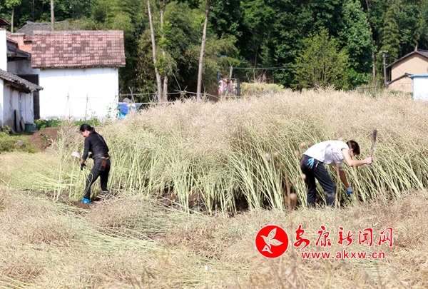 雨過初晴,漢陰月河川道油菜全面成熟,進(jìn)入收獲階段。同時,該縣農(nóng)業(yè)農(nóng)村局干部深入村戶作好安全生產(chǎn)及禁燒秸稈宣傳工作,確保安全力爭做到顆粒歸倉。(謝小利 攝)J6n安康新聞網(wǎng)