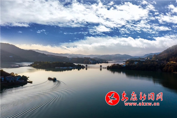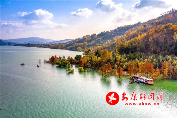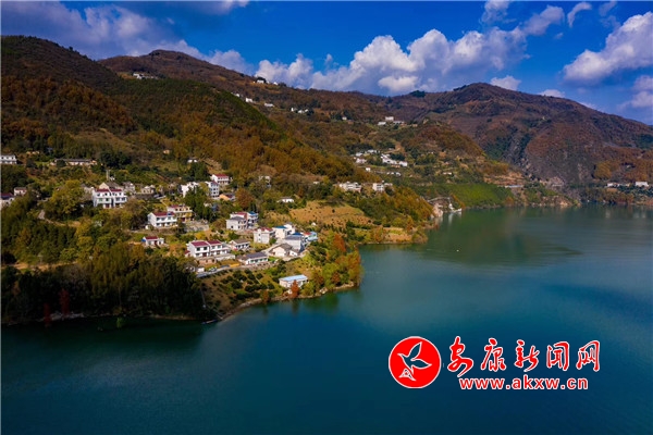 深秋時節(jié),蔚藍(lán)的天空一塵不染,晶瑩明澈,朵朵云霞映照在碧波如洗的瀛湖水間,分外絢麗。nmc安康新聞網(wǎng)