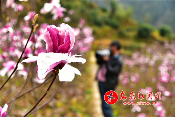 近日,平利縣廣佛鎮(zhèn)八角廟村5000畝辛夷花絢麗綻放,游客紛至沓來,觀賞拍照。(王韜/圖文)