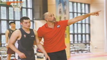 原標(biāo)題:廣州龍獅宣布 西班牙外教上任 胡安(右)帶隊(duì)展開公開訓(xùn)練課。(許蓓 攝) 西班牙籍教練胡安·安東尼奧·奧蘭加加盟廣州龍獅籃球俱樂……