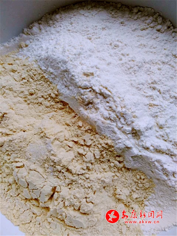 兩摻面,一半豆面與一半麥面在漢江水的調(diào)和下,經(jīng)過反復(fù)搓揉摻搟,兩種面粉化作一種新的食材——兩摻面。n2f安康新聞網(wǎng)