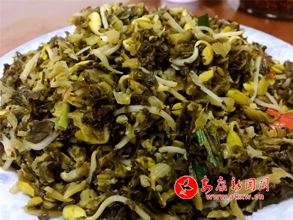兩摻面摻好后醒的過程中,從酸菜壇子里撈出清亮的酸菜,配蒜瓣、姜末、蔥段、蒜苗、干辣子為佐料,韭菜、豆芽為輔料,一起下鍋炒熟,地道的安康酸菜出鍋,靜候與兩摻面的相逢。n2f安康新聞網(wǎng)
