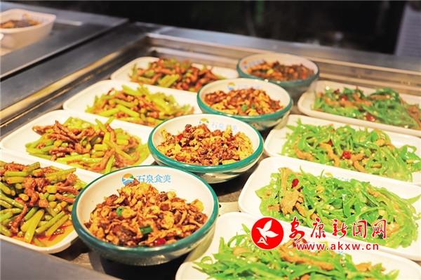 活動(dòng)現(xiàn)場,鑼鼓喧天,食客如織,一道道美味的小碗菜在臺(tái)面上整齊排列。在顧客選購結(jié)束后,只需將托盤放到收銀臺(tái)前掃描,即可快速自助結(jié)賬。經(jīng)濟(jì)實(shí)惠、方便快捷的小碗菜,已覆蓋堂食、外賣、一人食、家庭小吃等各種消費(fèi)場景,獨(dú)特的石泉風(fēng)味,更能讓顧客吃飽又吃好。