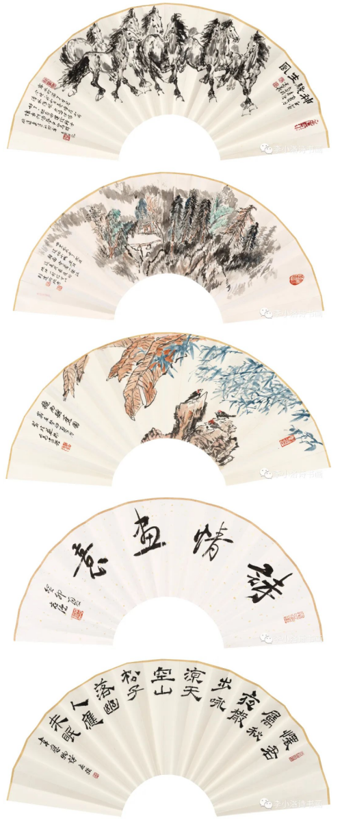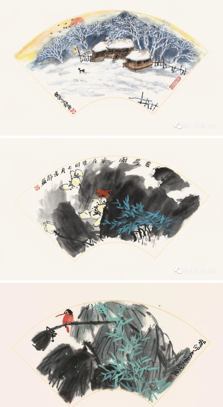 詩人寇宗鄂和林莽,均為《詩刊》編委,都曾擔(dān)任過《詩刊》的編輯部主任?茏诙踉鴰煆闹剿嫾倚毂蓖,詩人牛漢,詩畫兼擅。林莽作為白洋淀詩群和朦朧詩重要代表詩人,詩畫相融,桃李天下。張瑞田早年寫詩,后來多寫散文和書畫評(píng)論,是當(dāng)今活躍的評(píng)論家和書家。李木馬,李小洛,都曾參加過《詩刊》社的“青春詩會(huì)”,就讀魯迅文學(xué)院高研班,在詩歌和書畫創(chuàng)作上多年努力,取得了一定的成績……一人一格、一人一品,一扇一意、一扇一味,五位詩人作家的詩意筆墨,傳遞著各自對(duì)生活、藝術(shù)與世界的熱愛,認(rèn)知與發(fā)現(xiàn)。君子和而不同,透過一幀幀詩意盎然的扇面小品,在交相輝映的筆情墨趣中,可以看到他們相互啟迪,感染和照亮的友誼與藝術(shù)追求。